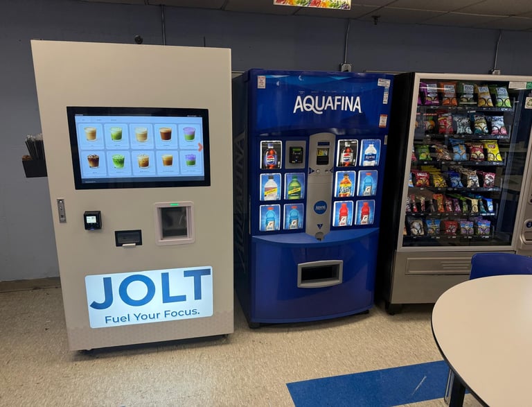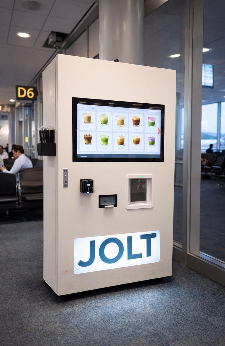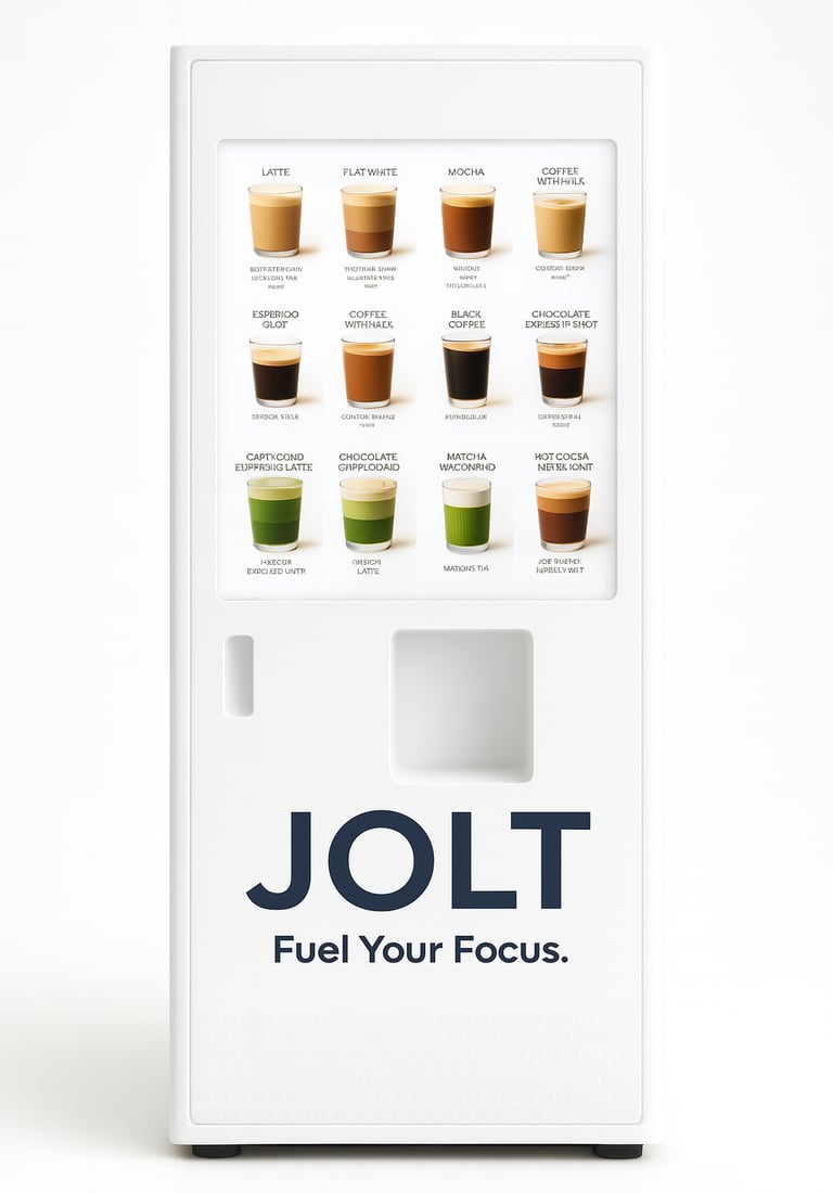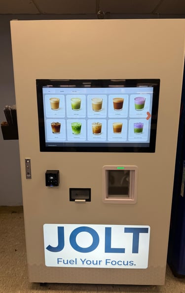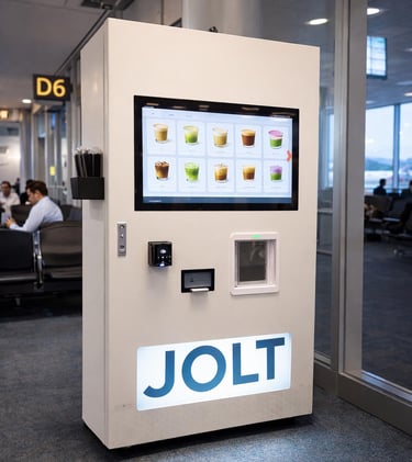 JOLT is an automated beverage system delivering premium hot and iced drinks 24/7. Perfect for airports, hospitals, offices, student housing, malls, warehouses, cruise lines, and more. One compact machine. Zero labor. Continuous revenue.